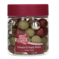 De FunCakes Choco Crispy Ballen behoren tot onze premium lijn strooisels, te herkennen aan het speciale potje met paarse deksel. Deze grote choco ballen (ø15 mm) hebben een heerlijke krokante kern, waardoor ze niet alleen de mooiste finishing touch voor je traktaties zijn, maar ook de lekkerste. De chocolade die gebruikt wordt voor deze ballen geeft je traktaties een luxueuze smaak en de trendy kleurencombinaties zorgen voor een elegante look. Ga je voor onze themacombinaties? Of gebruik je liever de effen kleuren om je eigen unieke ontwerp te maken? Onze premium sprinkle range geeft je eindeloos veel opties!
